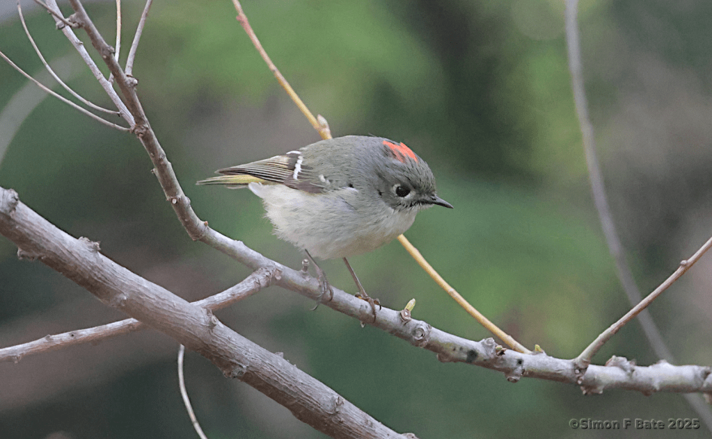 From back in March, here’s a male Ruby-crowned Kinglet. It has been more than a week since I last saw or heard one, so I think they’re on their way north now.